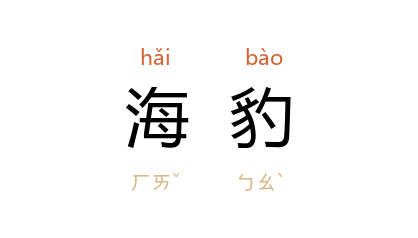 ⒈ 哺乳动物。生长在温带和寒带的沿海地方。四肢短而扁平,趾有蹼,后肢和尾巴相连,毛灰黄色带棕黑色斑点,腹部白色。肉可食,皮毛可做衣服、雨具和帐篷等,脂肪可制油。