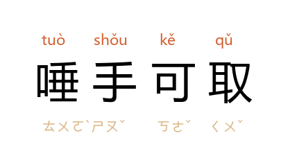 ⒈ 比喻极容易得到。亦作“唾手可得”