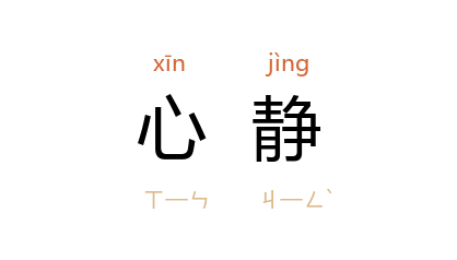 引唐·李嘉祐〈赠王八衢〉诗:「心静无华发,人和似古时。」《红楼梦·第六四回》:「虽说有三姑娘帮著办理,……总不得心静一会儿,别说想病好,求其不添也就罢了。」