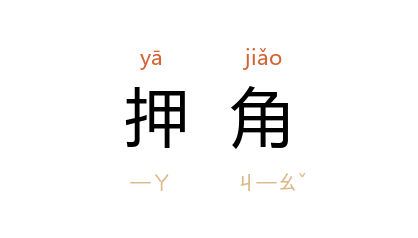引宋 洪迈 《容斋三笔·典章轻废》:“唐 两省官上事,宰臣送上,四相共坐一榻,各据一隅,谓之押角。”宋 庞元英 《文昌杂录补遗》:“唐 国子祭酒 李涪 作《刊误》云:‘两省官上事日,宰相临焉。上事者,设牀几面南而坐,判三道案,宰相别施一牀,连上事官南坐於四隅,谓之押角。’”