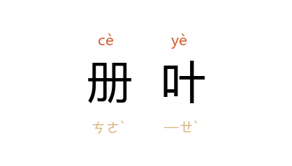⒈ 分页装裱成册的书画,称为「册叶」,或指页数。也作「册页」。