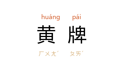 ⒈ 黄色的牌子。体育比赛中,运动员、领队或教练员故意违犯规则或对裁判员不礼貌,裁判员出示黄牌予以警告。后亦借指生活中的警告信号。