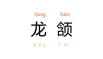引唐 陆复礼 《珠还合浦赋》:“利用溥博,何必取之於龙頷;报德宏多,奚由得之於蛇口?”唐 李绅 《趋翰苑遭诬构四十六韵》:“凤形怜彩笔,龙頷借驪珠。”唐 杜牧 《和裴杰秀才新樱桃》:“圆疑窃龙頷,色已夺鸡冠。”