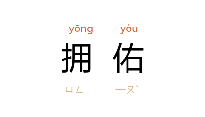 ⒈ 见“拥祐”。亦作“拥右”。亦作“拥佑”。拥戴帮助;保佑。