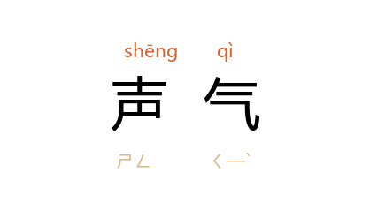 ⒈ 声音和气息。句下唐·孔颖达·正义:「同声相应者,若弹宫而宫应,弹角而角动是也……此二者声气相感也。」后用以比喻朋友间志趣相投合。