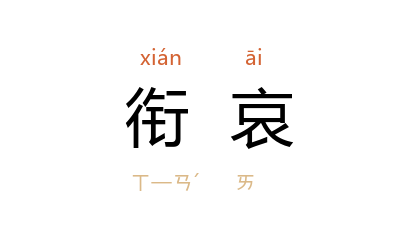 引三国 魏 嵇康 《养生论》:“终朝未餐,则嚣然思食;而 曾子 衔哀,七日不飢。”晋 陶潜 《悲从弟仲德》诗:“衔哀过旧宅,悲泪应心零。”唐 韩愈 《祭十二郎文》:“闻汝丧之七日,乃能衔哀致诚。”清 吴伟业 《思陵长公主挽诗》:“衔哀存父老,主祭失元良。”