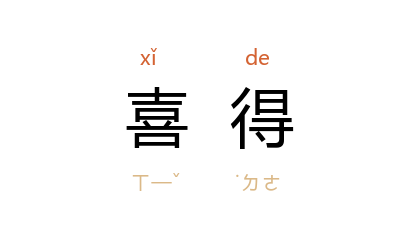引《喻世明言·卷四〇·沈小霞相会出师表》:「喜得堂上官,是个有主意的人。」《儿女英雄传·第一六回》:「又喜得先从褚大娘子口里,得了那邓九公的性情,因此顺著他的性情,一见面便合他欢迎雄谈。」