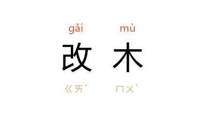 ⒈ 古时钻木取火,随四季更迭而换用不同的木材,称“改木”。后用以比喻时节迁移。参见“改火”。