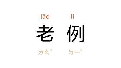 引《二十年目睹之怪现状》第五三回:“那一位 罗太太 还是循着他的老例去闹阔绰。”鲁迅 《二心集·知难行难》:“中国 向来的老例,做皇帝做牢靠和做倒霉的时候,总要和文人学士扳一下子相好。”