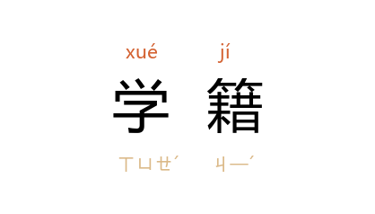 ⒈ 登记在校学生个人资料的档案。入学时取得学籍,退学则取消学籍,可作为学生就读某校的资格证明。