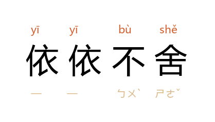 《红楼梦·第一一九回》:「巧姐等在刘老老家住熟了,反是依依不舍。更有青儿哭著恨不能留下。」
