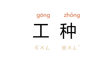 ⒈ 依工作的性质和任务,划分成许多不同的种类。如钳工、车工、铸工等。