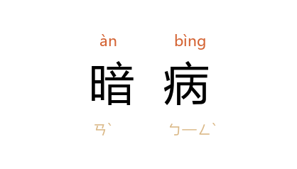 ⒉ 引申指较难觉察的弊病。参见“暗疾”。