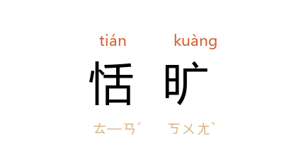 引晋 张华 《答何劭》诗之一:“恬旷苦不足,烦促每有餘。”唐 白居易 《昭国闲居》诗:“平生尚恬旷,老大宜安适。”宋 曾巩 《移守江西先寄潘延之节推》诗:“子遗万事遂恬旷,我繫一官常侷促。”清 钮琇 《觚賸续编·月涵》:“吴兴 董説 字 若雨,华阀懿孙,才情恬旷。”