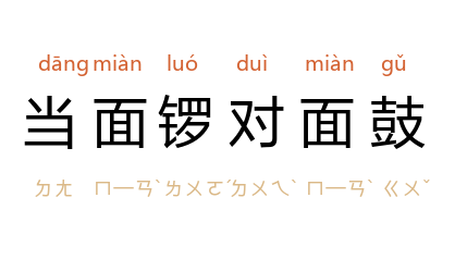 引《金瓶梅词话》第五一回:“他听见俺娘説不拘几时要对这话,他也就慌了,要是我,你两个当面锣对面鼓的对不是!”苗培时 《矿山烈火》:“两方代表,当面锣对面鼓,把罢工问题协商协商。”亦作“当面鼓对面锣”。 《儿女英雄传》第九回:“就説媳妇儿也罢,也有这样当面鼓对面锣的説亲的吗?”