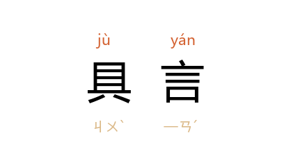 引《史记·魏其武安侯列传》:“立召入,具言 灌夫 醉饱事,不足诛。”北魏 郦道元 《水经注·汾水》:“拜 邓训 为謁者,监护水功。 训 隐括知其难立,具言 肃宗。肃宗 从之,全活数千人。”唐 韩愈 《谢自然诗》:“凝心感魑魅,慌惚难具言。”