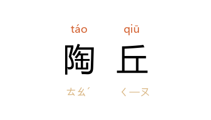⒊ 复姓。 春秋 齐 有大夫 陶丘德 ; 汉 有侍御 陶丘仁。见《通志·氏族三》。