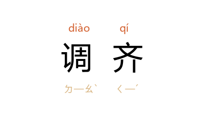 引《荀子·富国》:“时其事,轻其任,以调齐之;潢然兼覆之,养长之,如保赤子。”元 柳贯 《春尽日雨中宴坐次刘士干宪史见贻之作》诗之二:“世故纷纷萃一身,直教调齐适甘辛。”清 曾国藩 《送陈岱云出守吉安》诗:“国工 吴 与 郑,调齐妙心匠;鬼録不见收,人谋信可仗。”