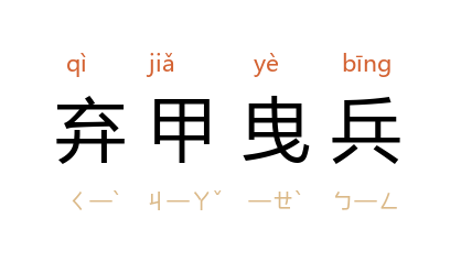 ⒈ 抛弃铠甲,拖著兵器。形容战败逃走的狼狈状。