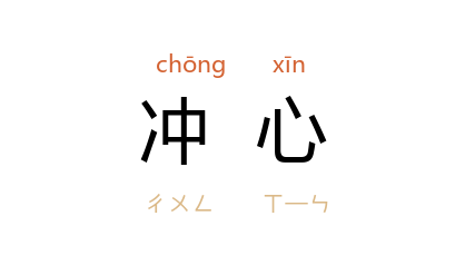 引《初刻拍案惊奇·卷一六》:「灿若听了『紧急家信』四字,一个冲心,忽思量著梦中言语,却似十五个吊桶打水,七上八落。」《儒林外史·第一四回》:「是这样吓他。他又见了几个冲心的钱,这事才得了。」