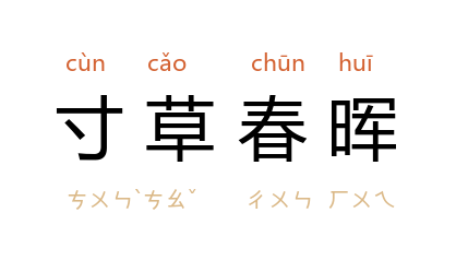 ⒈ 寸草,比喻子女。春晖,比喻父母。语本唐·孟郊〈游子吟〉:「谁言寸草心,报得三春晖。」比喻父母恩情深重,子女即使竭尽心意也难以报答。