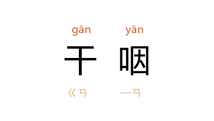 引《红楼梦·第一〇一回》:「凤姐听了,气的干咽。」