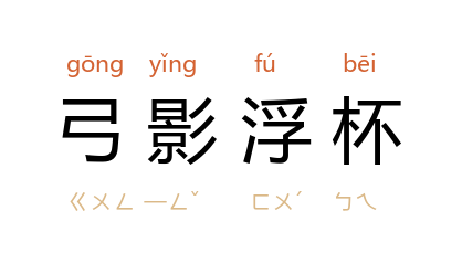 引明·刘炳鄱〈鄱城归舟同何希宪共载谈悲歌有感〉诗:「弓影浮杯疑老病,鸡声牵梦动离愁。」