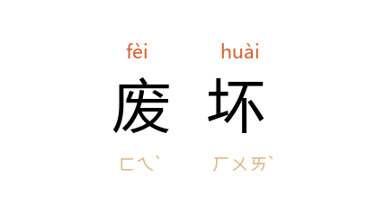 引《韩诗外传》卷五:“礼义废坏,人伦不理。”《后汉书·皇后纪上·章德窦皇后》:“家既废坏,数呼相工问息耗。”宋 欧阳修 《准诏言事上书》:“此三弊因循於上,则万事弛慢废坏於下。”清 顾炎武 《与友人论父在为母齐衰期书》:“礼教不明,丧纪废坏。”