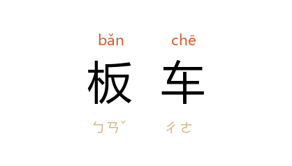 ⒈ 两边各有一个橡皮轮子的车。车身为笨重的大木板,四周无栅栏,多以人力拉行。