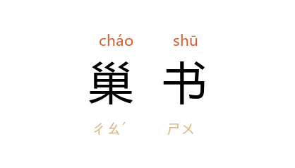 ⒈ 宋 陆游 晚年,书室狭小,俯仰四顾,乱书围之,如积槁枝,故名其室曰“书巢”。事载 宋 陆游 《书巢记》。后因以“巢书”指埋身在四壁图书的居室之中。