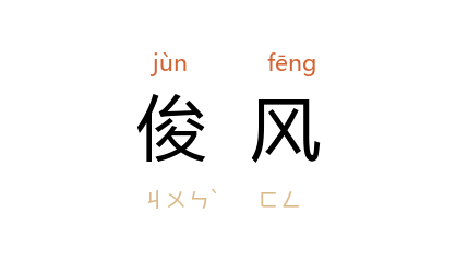 ⒈ 大风。俊,通“骏”。《大戴礼记·夏小正》:“正月,启蛰……时有俊风,寒日涤冻涂。”戴德传:“俊者,大也。大风,南风也。”顾凤藻集解:“俊,与'骏'通。《尔雅》曰:'骏,大也。'”一说和美的风。见清徐世溥《夏小正解》。