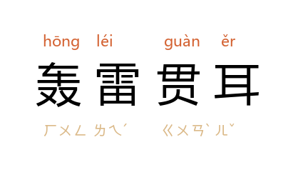 引元·郑光祖《王粲登楼·第一折》:「久闻贤士大名,如轰雷贯耳。」