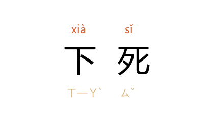 《红楼梦》第一一九回:“王夫人 听了这话,便怔了半天,也不言语,便直挺挺的躺倒床上。亏得 彩云 等在后面扶着,下死的叫醒转来,哭着。”