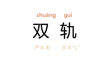 ⒉ 借指并行的两个系统。参见“双轨制”。