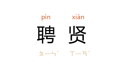 引《汉书·邹阳传》:“汉 兴,诸侯王皆自治民聘贤。”《晋书·皇甫谧传》:“故上有劳谦之爱,下有不名之臣;朝有聘贤之礼,野有遁窜之人。”明 陶宗仪 《辍耕录·丘真人》:“聘贤选佐,将以安天下也。”