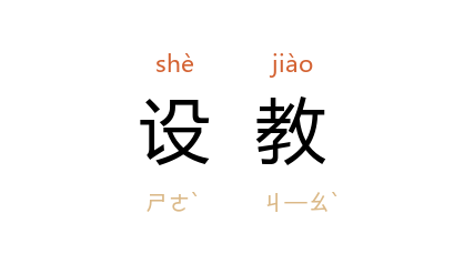 引《易·观》:“圣人以神道设教,而天下服矣。”《晋书·刑法志》:“古人有言:‘善为政者,看人设教。’”王闿运 《衡州西禅寺碑》:“礼乐所以设教,而教非 尧 舜 之心。”