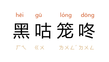 例如:「夜里停电时,黑咕笼咚的,什么都看不见!」