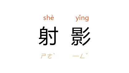 ⒉ 古书上指“蜮”,因为据说“蜮”这种动物能含沙喷射人影使人致病。“射影”也是“蜮”的别名。