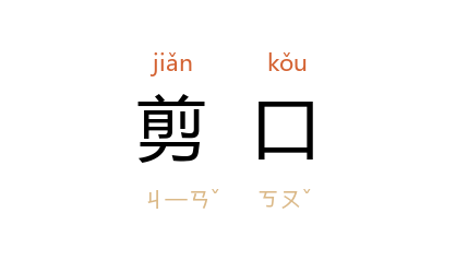 ⒈ 中国术语。扬州评话等曲种称一场演出终止处将书的内容剪断打住为剪口。