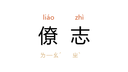 ⒈ 僚,指 春秋 楚国 勇士 熊宜僚。白公胜 作乱,胁迫 熊宜僚 随从。 僚 不肯,“承之以剑,不动”。事见《左传·哀公十六年》。后以“僚志”称坚贞之志。