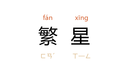 引《文选·傅玄·杂诗》:「繁星依青天,列宿自成行。」