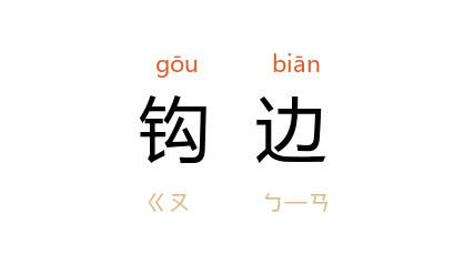 引《礼记·深衣》:“古者深衣盖有制度……续袵鉤边,要缝半下。”郑玄 注:“鉤边,若今曲裾也。”清 江永 《深衣考误》:“鉤边,谓裳之右旁别用一幅布斜裁之,缀於右后衽之上,使鉤而前也, 汉 时谓之曲裾。盖裳后为裾,缀於裾曲而前,故名曲裾也。所以必用鉤边者,裳之右畔前后衽不合。若无鉤边,则行步之际,露其后衽之里,有鉤边而后可用揜裳际也。”