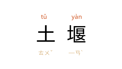 引《元史·河渠志一》:“每经霖雨,则三牐月河,截河土隁,尽为冲决。”西戎 《女婿》:“水库工地上,一片灯火通明,照得好似白天一般。土堰上,插着一面一面的红旗。”