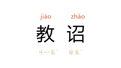 引《战国策·燕策一》:“齐 赵,强国也,今主君幸教詔之,合从以安 燕,敬以国从。”《吕氏春秋·审分》:“不知乘物而自怙恃,夺其智能,多其教詔,而好自以。”宋 秦观 《辞史官表》:“若非承父兄之教詔,世守其言,则必积师友之渊源,材充厥职。”明 张一桂 稚圭甫 《重刻<颜氏家训>序》:“意其家庭之所教詔,父子之所告语,必有至训焉,而今不及闻矣。”