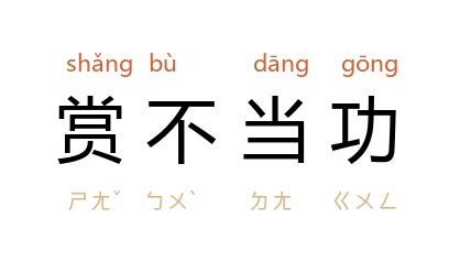 引《荀子·正论》:「夫德不称位、能不称官、赏不当功、罚不当罪,不祥莫大焉。」《明史·卷二一〇·赵锦传》:「致朝廷之上,用者不贤,贤者不用;赏不当功,罚不当罪。」
