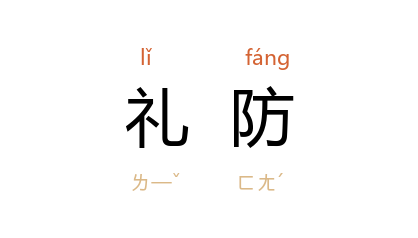 ⒈ 礼节法度。礼之禁乱,如堤防之止水,故称为「礼防」。