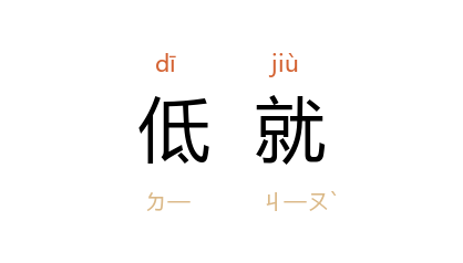 ⒈ 屈就;将就。谓降低身份成就某事。多用于就职或选择配偶。