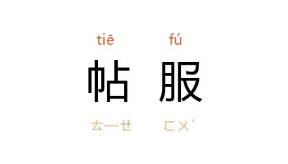 ⒈ 顺从、屈服。宋·王安石〈彰武军节度使侍中曹穆公行状〉:「公许之入赎自首,还故地而至者数千人,后遂帖服皆为用。」也作「帖伏」。