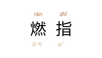 引《檮杌闲评》第五十回:“老僧道:‘你心既虔,今夜你们可燃指为香,夜静时叫你们见些光景。’三人果将中指剖开,用清水洗浄,将麻紧裹,加上清油,三更时点起。”