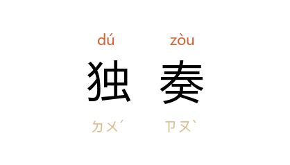 ⒉ 今为乐器演奏形式之一,如钢琴独奏、琵琶独奏等。有时也用其它乐器伴奏。